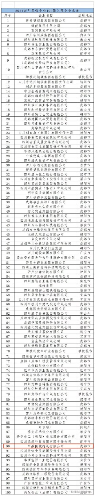 为展示四川民营企业发展实力,推动四川民营经济高质量发展,10月9日上午,四川省工商联在金牛宾馆发布了“2021四川民营企业100强榜单”。中融国城建设入围“2021四川民营企业100强榜单”。榜单以企业年度营业收入总额为基本指标,再结合企业规模、产业结构等情况综合评选。
